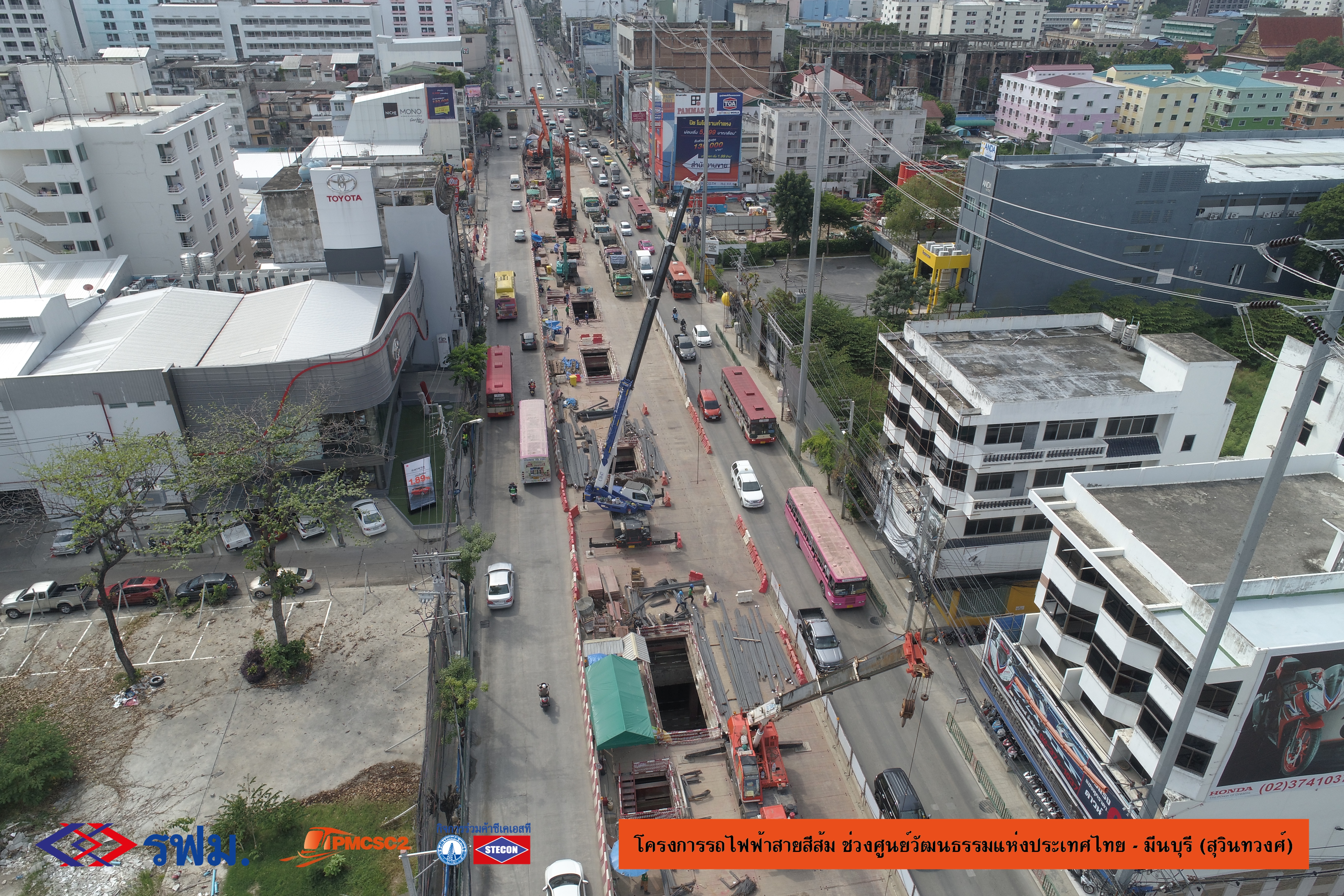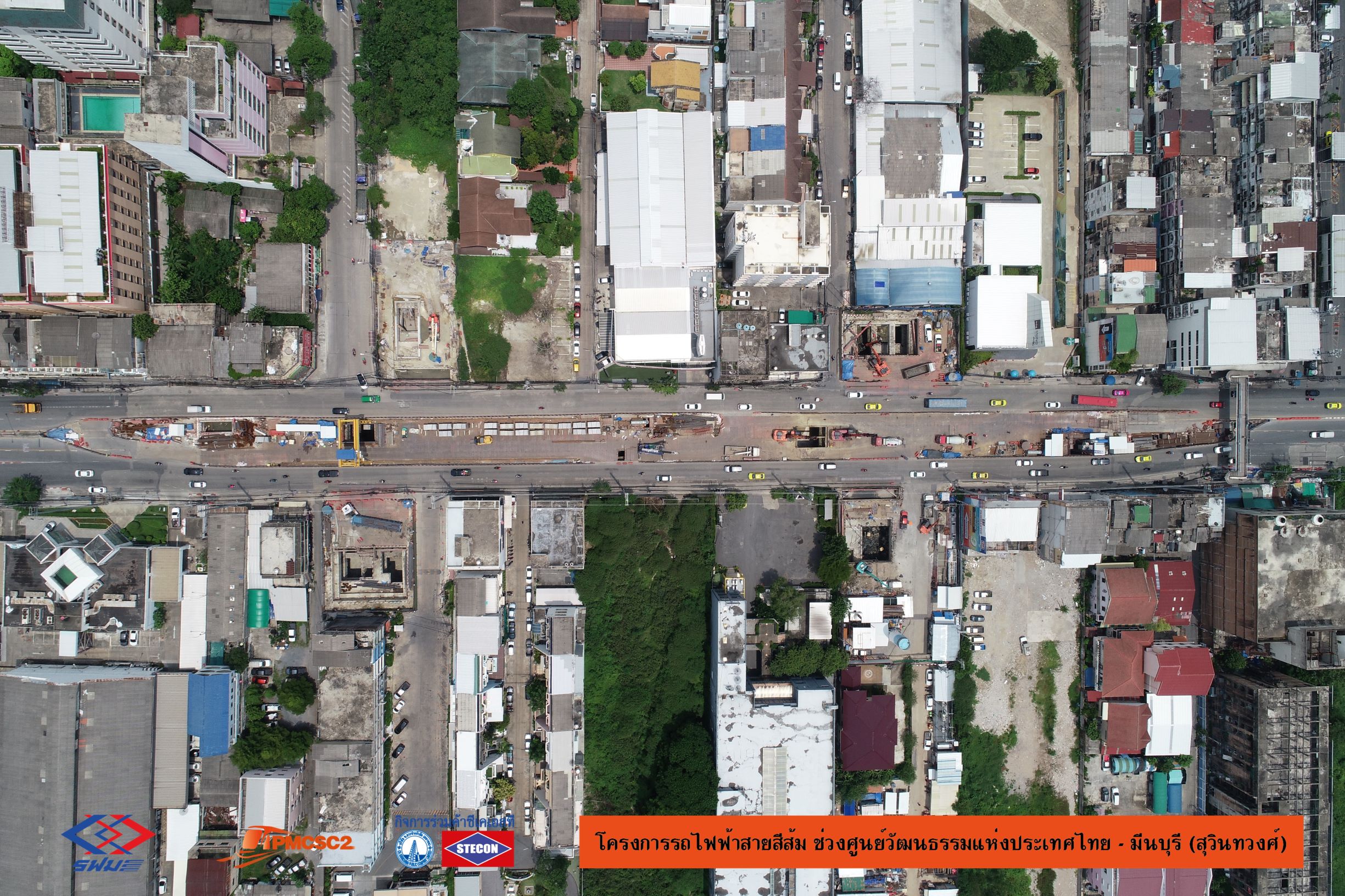 ภาพถ่ายทางอากาศแสดงพื้นที่ก่อสร้างบริเวณสถานีรามคำแหง 40 ประจำเดือนกรกฎาคม 2565